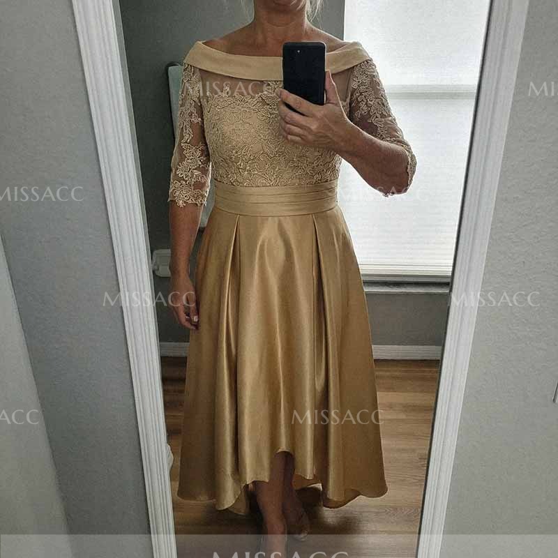 A-Line 1/2 Sleeves Asymmetrical Lace/Satin Mother Of The Bride Dresses With Appliques Lace
