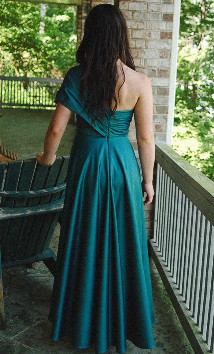 I ordered this dress for a wedding I'm attending and I'm so excited to wear it. The quality is fantastic, and it looks even better in person than it did online. The one-shoulder style is very chic, and I love the subtle sheen of the satin. It feels very well-made.