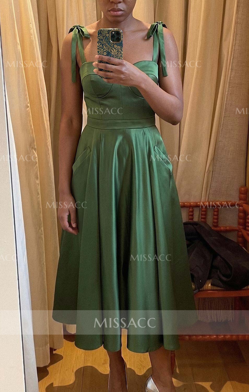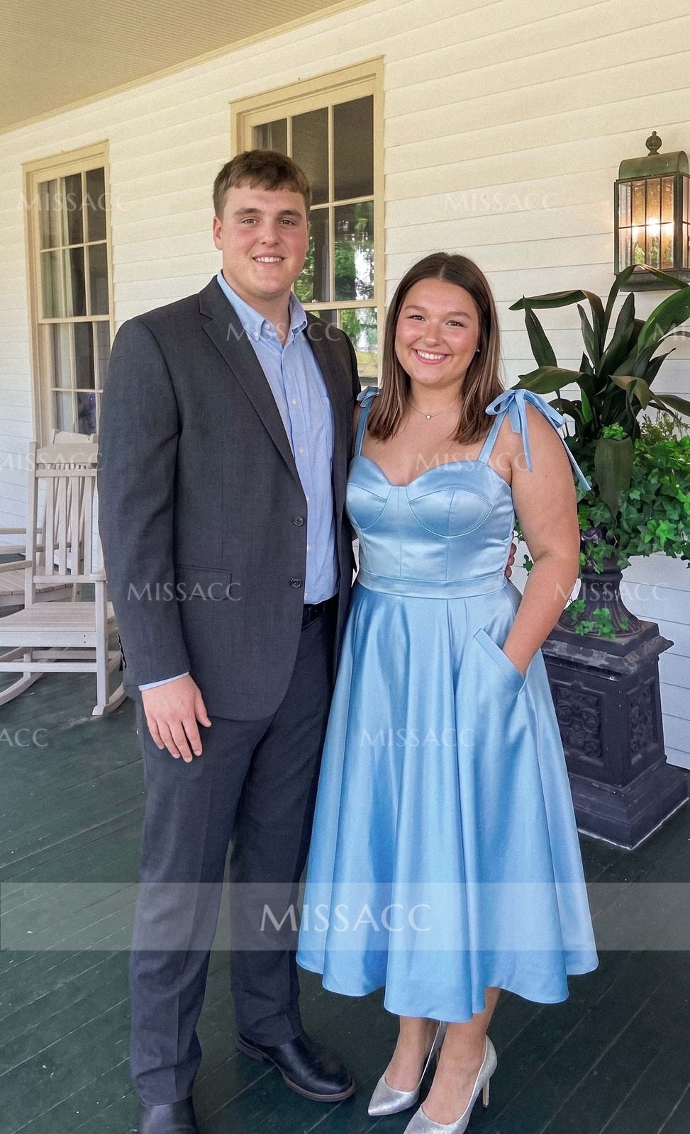 Satin sweetheart neckline homecoming dress with pockets, perfect for a chic and comfortable evening look.