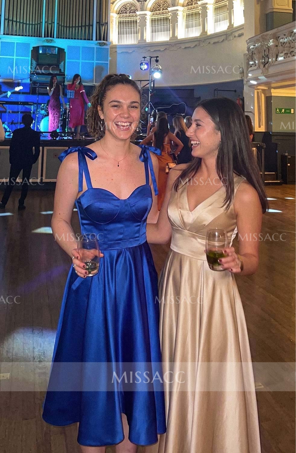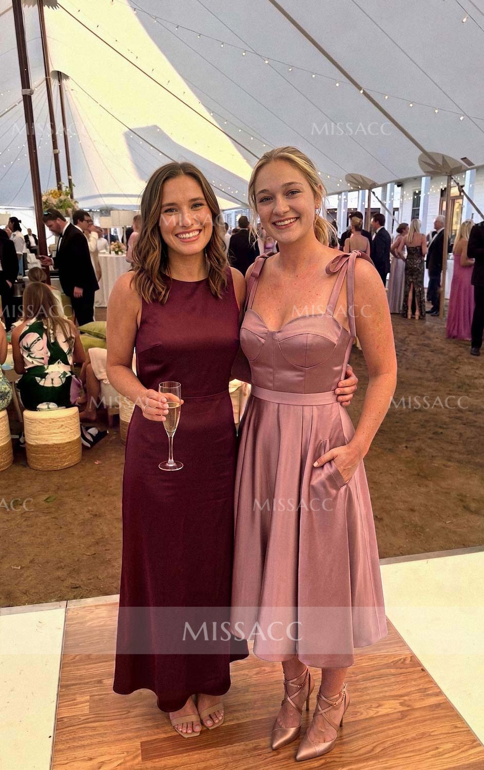 The quality of the satin is surprisingly high. It has a nice weight to it, which makes the skirt drape beautifully. The shoulder ties give the whole look a really elegant touch. I'm super happy with it!