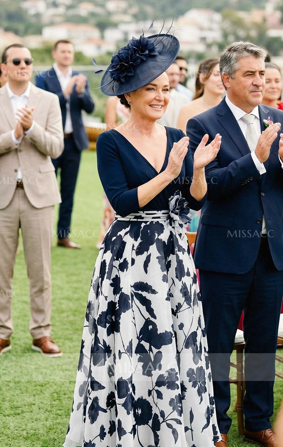 What a gorgeous and elegant dress! I wore it as the mother of the bride and felt absolutely fantastic. The contrast between the solid top and the patterned skirt is so chic. It looked absolutely stunning in the photos next to my daughter's dress. Thanks to the stretch chiffon, I could move freely and celebrate all day long. Worth every penny!