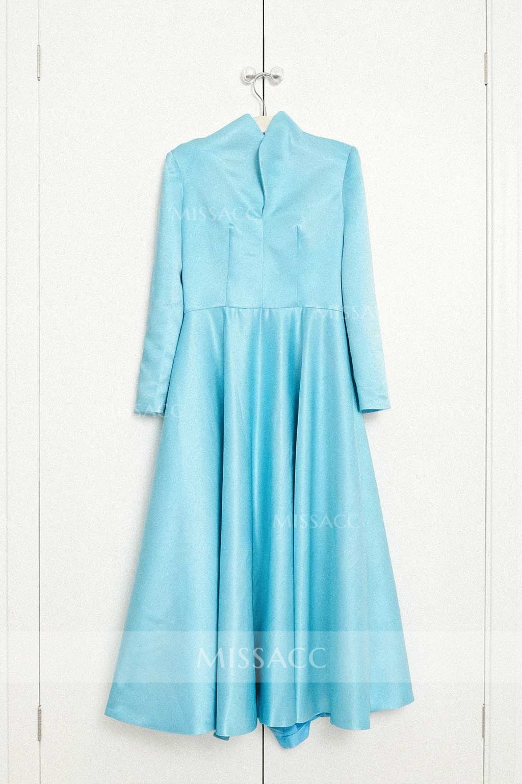 A-Line V-Neck Long Sleeves Floor-Length Matte Satin(Non-Stretch) Mother Of The Bride Dresses #SMBD11816