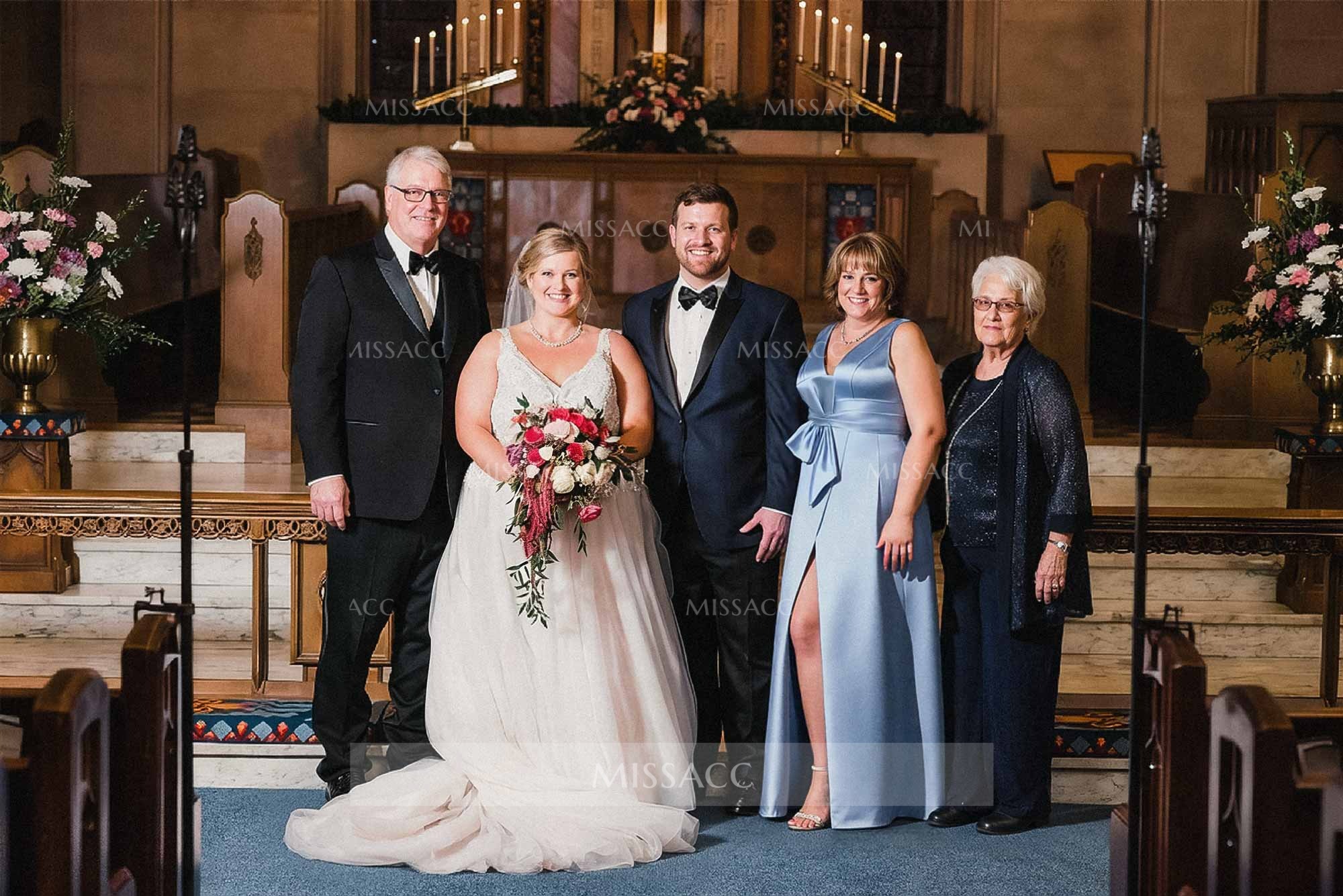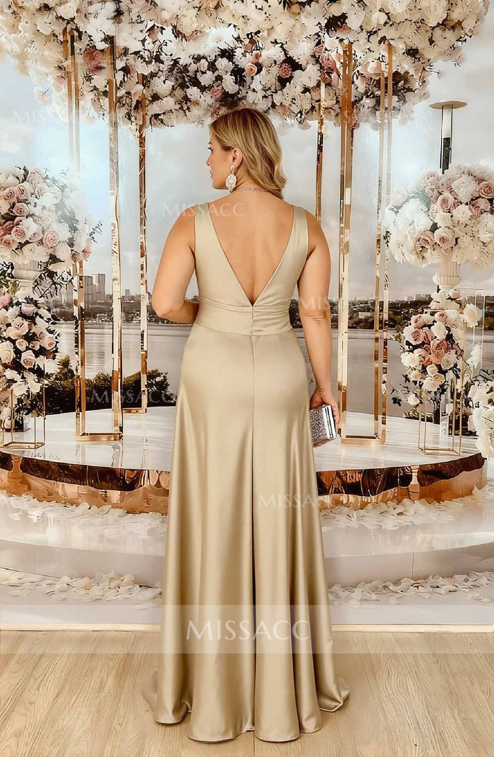 Get ready to dazzle everyone with the Mother of the Bride Gown! This gown is unique and attention-grabbing. With a striking V-neckline, this is the epitome of modern elegance. With a three-dimensional, flowing skirt and a back zipper closure to ensure a flattering fit, this mother of the bride gown is ideal for any formal occasion.