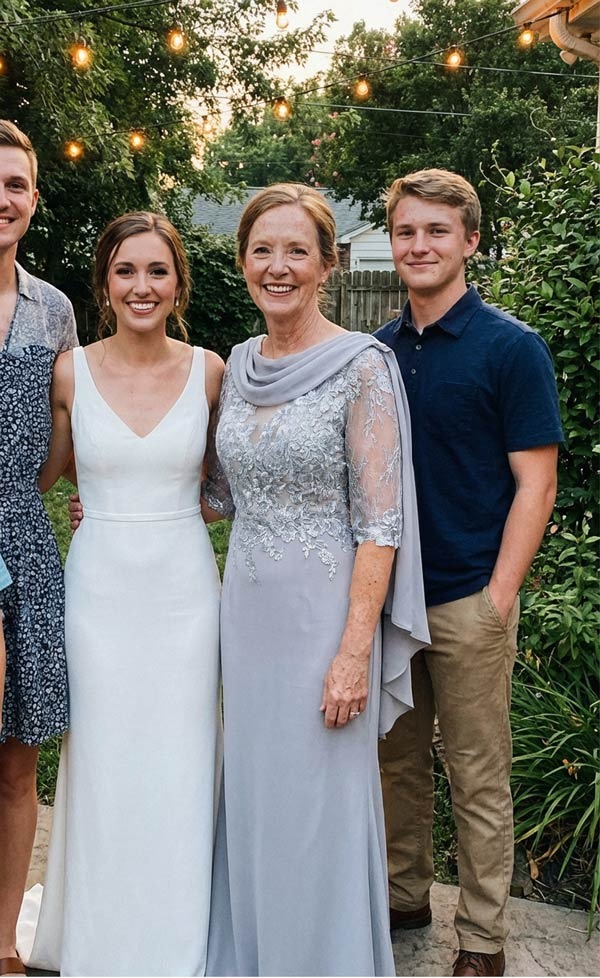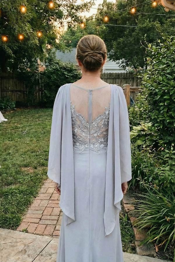 Stunning lace sleeve mother of the bride dress, it is perfect for a sophisticated and elegant wedding celebration. Crafted from a luxurious fabric that drapes beautifully, this gown is as comfortable as it is stylish. The lace sleeves add a delicate touch, while the cowl neck design slims the neckline and accentuates the shoulder line.