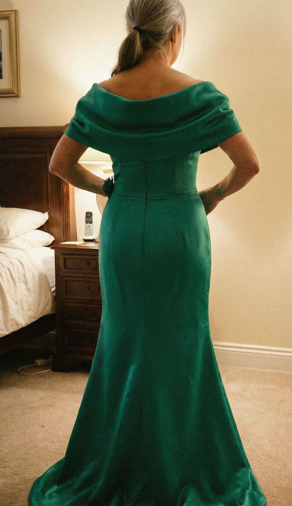 I was so nervous about finding the right dress for my girl's wedding . I wanted something elegant but breathable. This satin mermaid dress honestly saved the day. The cap shoulders gave just the right amount of coverage without making me feel stuffy, and the beading detail is absolutely stunning in natural sunlight. I didn't even need to get it hemmed, which is a miracle for my height. I felt sophisticated but comfortable enough to dance with my son during the reception. Definitely recommend grabbing this if you want to look put-together without trying too hard.