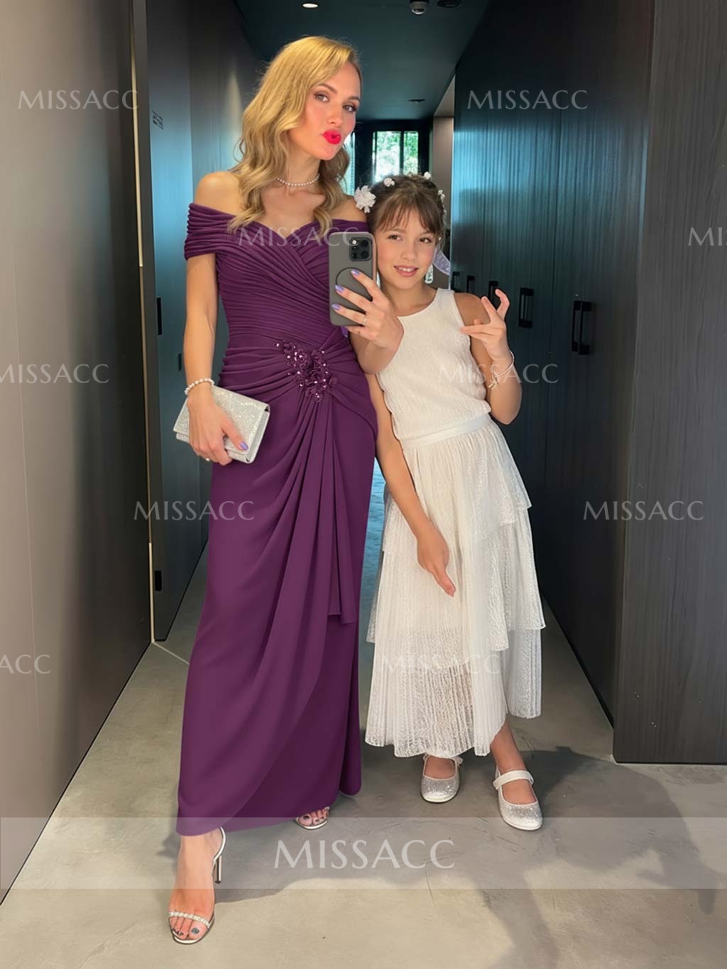 Flattering Ruched Wrap Off Shoulder Ruffled Waist Mother Of The Bride Dresses