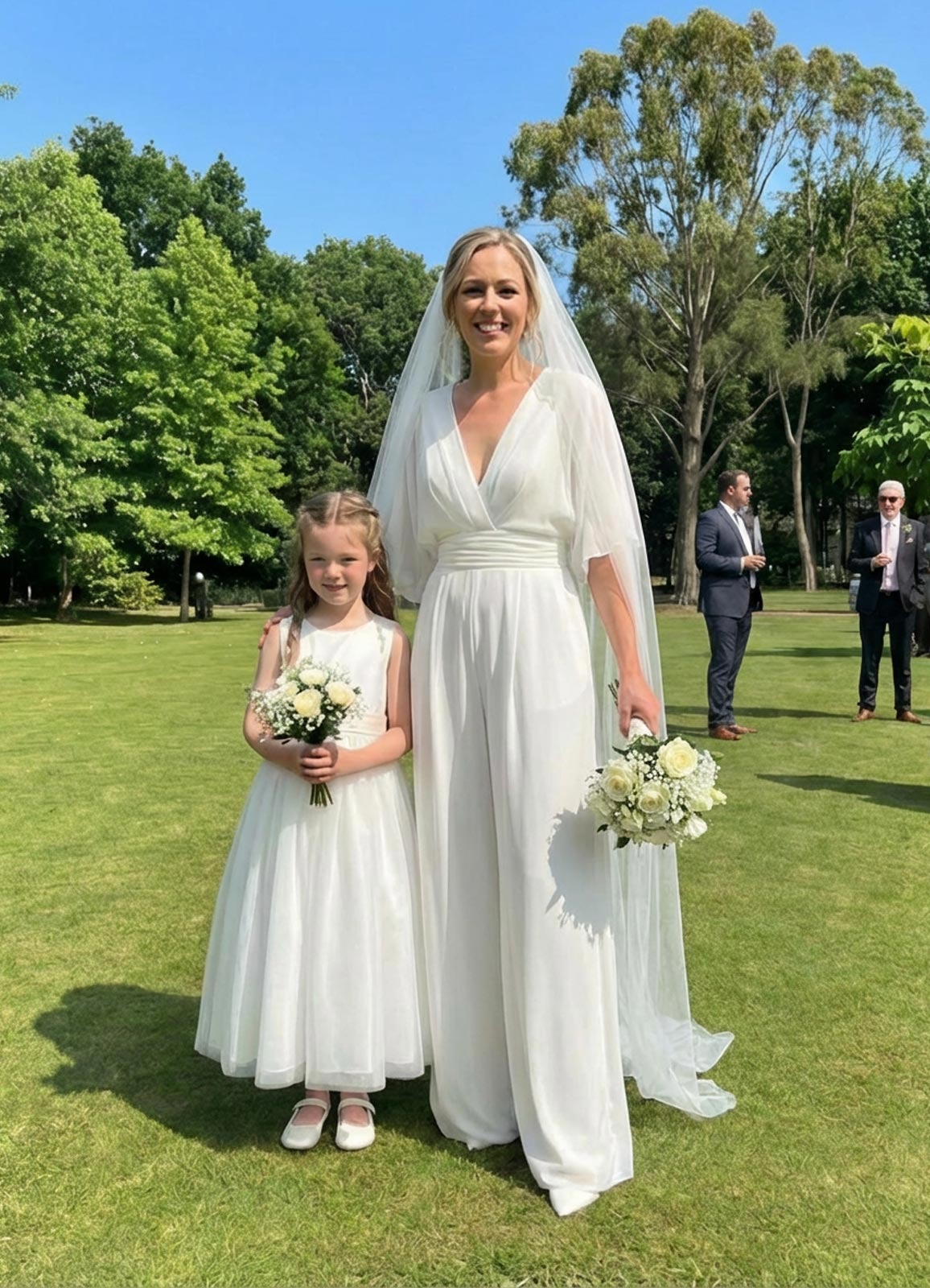 I was hesitant about ordering a wedding outfit online, but this jumpsuit actually surprised me. The fit is pretty spot on, though the legs are a tiny bit long for my height. I love that it has pockets! The fabric feels decent, not super high-end but definitely not cheap. It’s perfect for the low-key courthouse ceremony we’re planning. Honestly, for the price, it’s a solid win. Just be ready to maybe hem the pants if you aren't wearing super high heels.