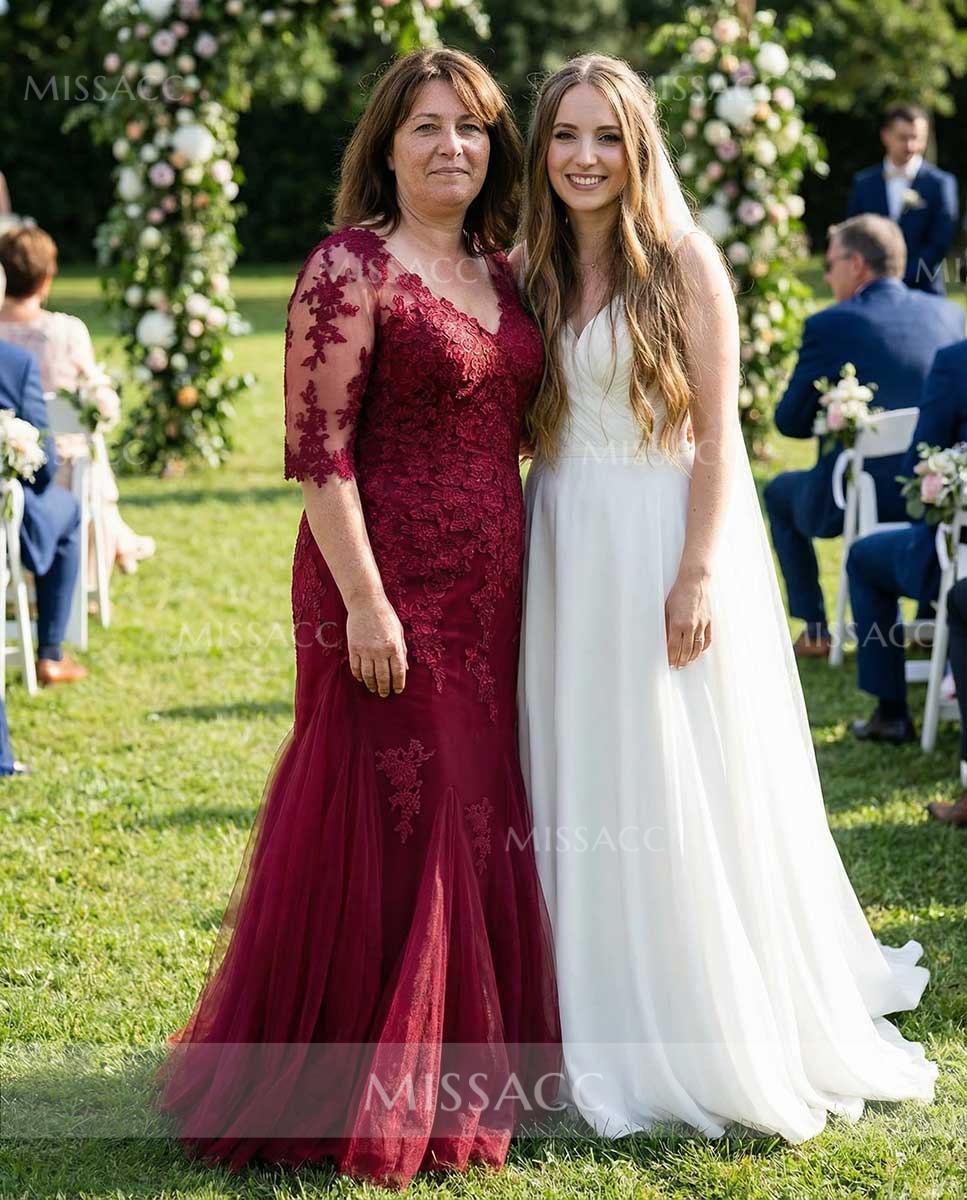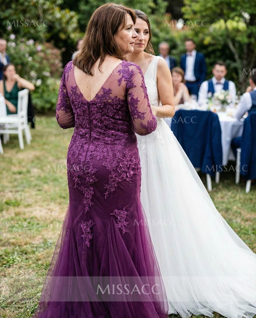 Intricate lace mermaid mother of the bride dress, perfect for elegant evening events. Luxurious fabric, flattering silhouette, designed for special occasions.