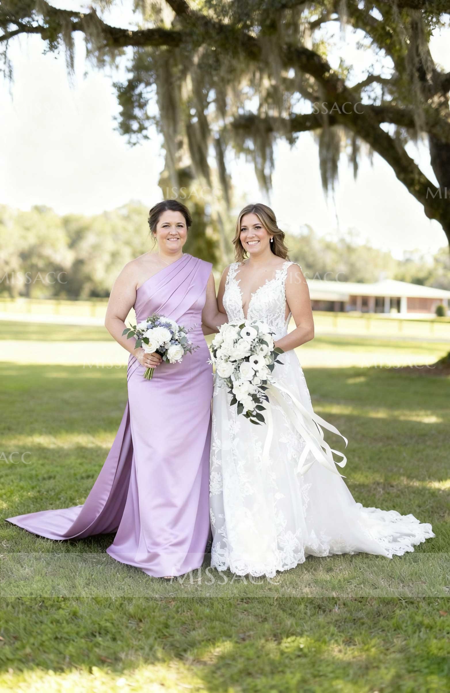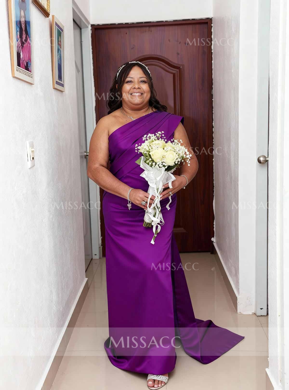 Be whisked away in pure sophistication in this mother of the bride dress. Draped with a foldover accent, this piece reveals an one shoulder neckline on a ruche-textured bodice. Designed with a partially open back, the long skirt fit as it finishes into a full-length design. Have them stop and stare with awe in this dress.