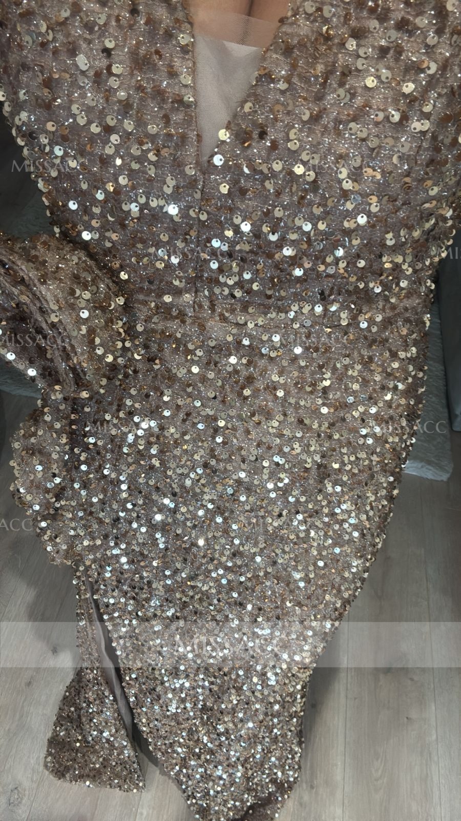 Wow, this dress is an absolute showstopper! Those sparkly long sleeves are the perfect finishing touch. It fits like a glove and feels amazing.