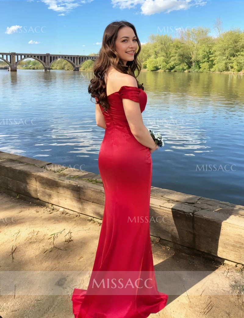 What a gorgeous dress! The fabric feels so luxurious, and it fits perfectly. The off-the-shoulder style is incredibly flattering, and the front slit adds a unique touch.