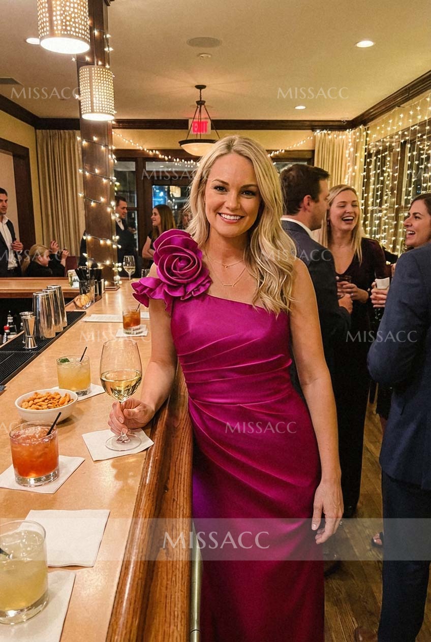 I wore this for a formal gala last weekend and felt so comfortable all night. Usually, these types of mermaid dresses are impossible to sit down in, but this one has enough give. The flower on the shoulder is a really sweet touch that makes it look expensive.
