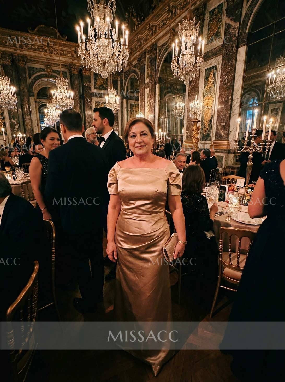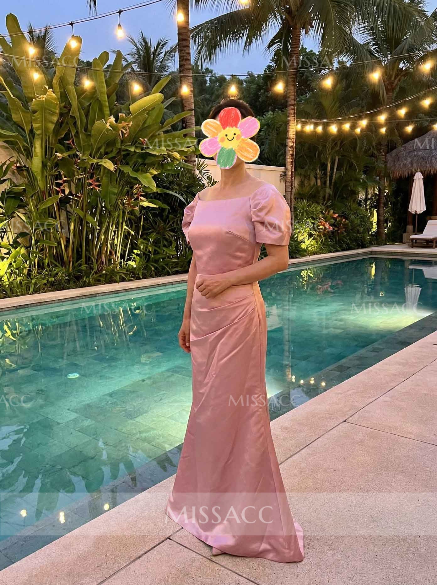Luxurious satin fabric defines this trumpet mermaid dress, featuring a scoop neckline and sleeveless design. Perfect for a mother of the bride to shine at the wedding ceremony.