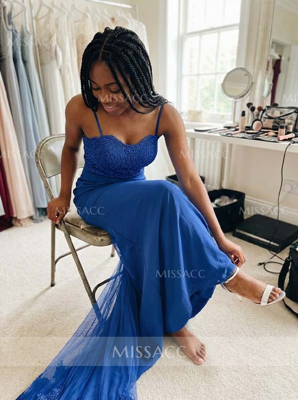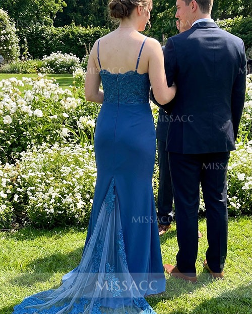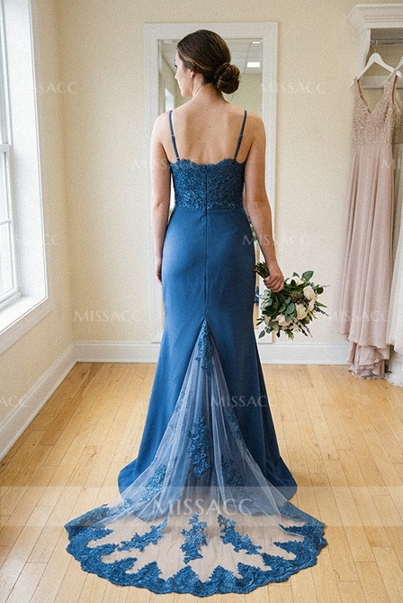 Trumpet/Mermaid Sweetheart Elastic Satin Bridesmaid Dresses With Appliques Lace #SBD10423