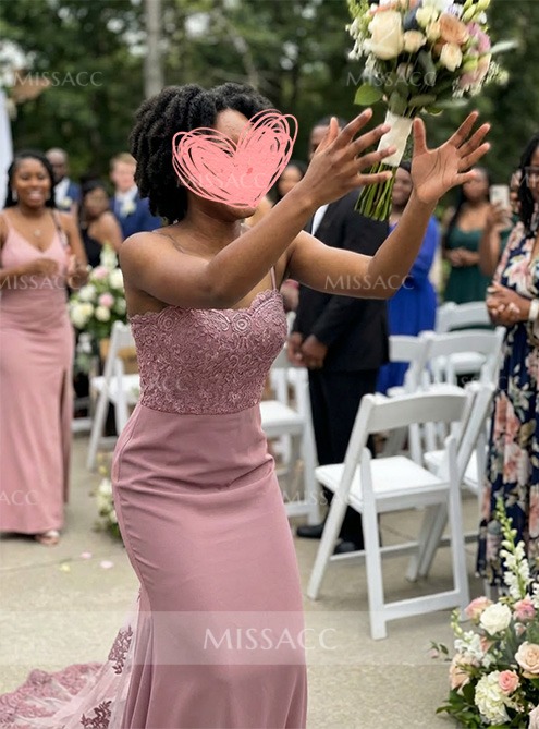 Trumpet/Mermaid Sweetheart Elastic Satin Bridesmaid Dresses With Appliques Lace